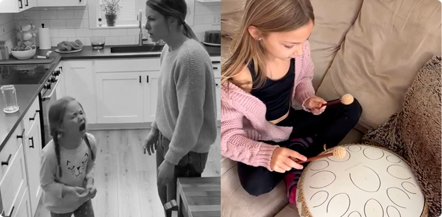 Day 3: She went to the drum on her own after getting frustrated with homework. Instead of a meltdown, she played for 10 minutes and came back calm. I almost cried.